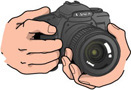 Крепко держите камеру и объектив, обе руки прижмите к туловищу. Однако не следует сильно напрягать мускулы. |